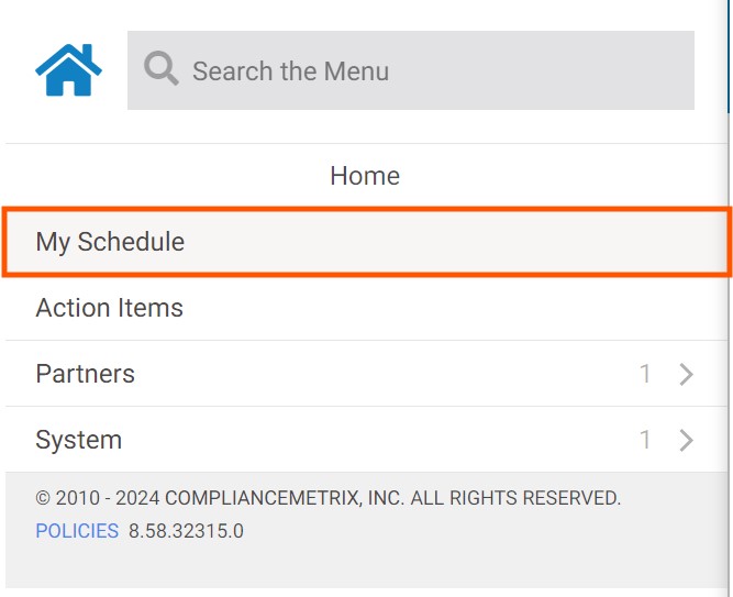 1. After logging into the SQF Assessment Database You will need to go to the “My Schedule” tab under the ellipse menu.