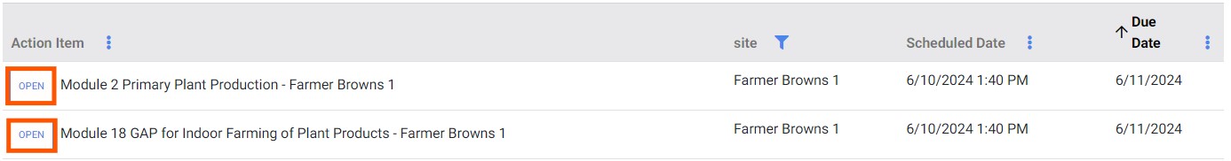3. You will then select the Audit that you want by clicking on the blue “OPEN” button. If there is more than one audit module for a facility you will only need to open one to get to the next step. Addition modules will show on the next page.