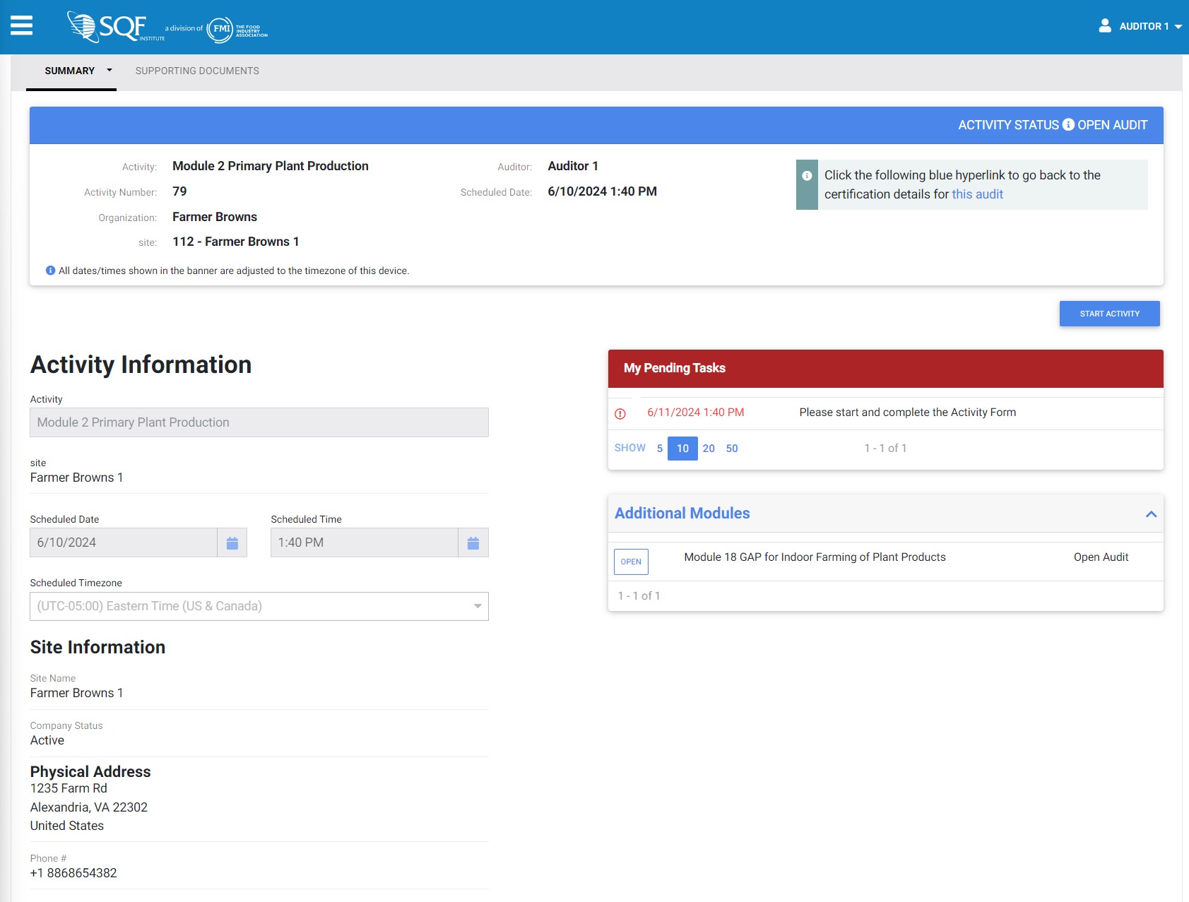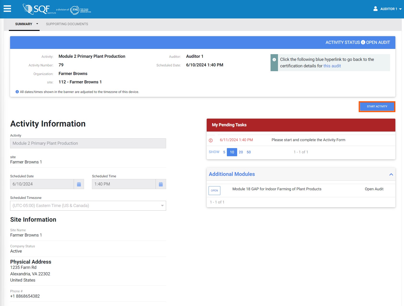 5. To start the audit module, click on the blue “START ACTIVITY” button in the upper right portion of the page.