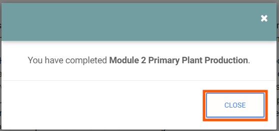 10. When you have finished the full module you will see a message stating, “You have completed Module…” Click the blue “Close” button.