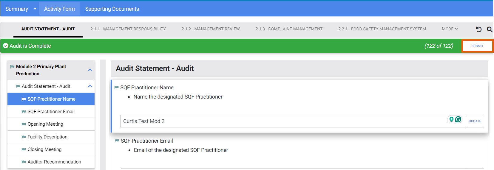 This article is for certification bodies, and addresses completing an audit in the SQF Assessment Database.