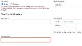 3。続いて、サイトタイプを「単一」または「セントラル」サイトのどちらかを選択します。これを行うには、「サイト名」の下にあるオプションのいずれかをクリックします。