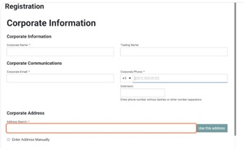 11。「住所検索」フィールドに会社の住所を入力します。入力内容に基づいてオプションが提案されます。候補の1つをクリックし、緑色の [この住所を使用する] ボタンをクリックすると、推奨住所を使用できます。