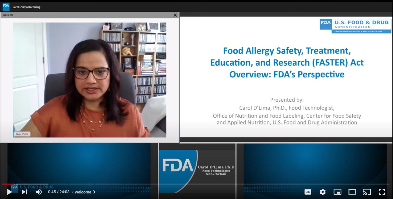 The U.S. Food and Drug Administration (FDA) released a new video that provides an overview of the 2021 Food Allergy Safety, Treatment, Education, and Research (FASTER) Act.