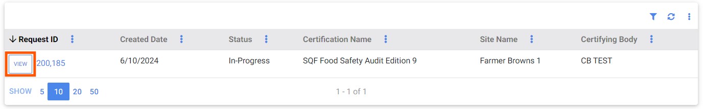 2. Encontre a auditoria de sua instalação e clique no botão azul “VISUALIZAR”. Isso o direcionará para a página “Processo de Certificação”.
