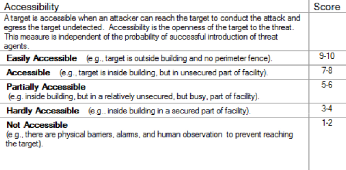 Example: The FDA has created an Accessibility scale and Vulnerability scale as shown below: